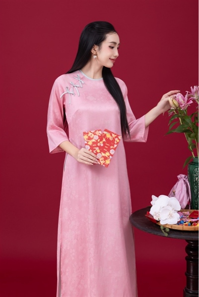 Áo dài tơ tằm suông viền cổ nơ