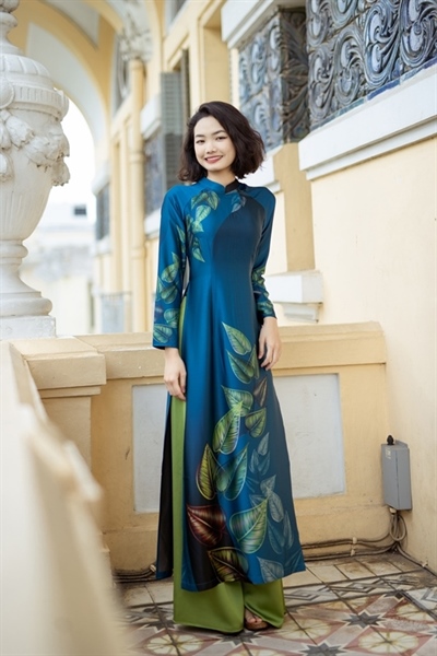 Áo dài truyền thống họa tiết lá